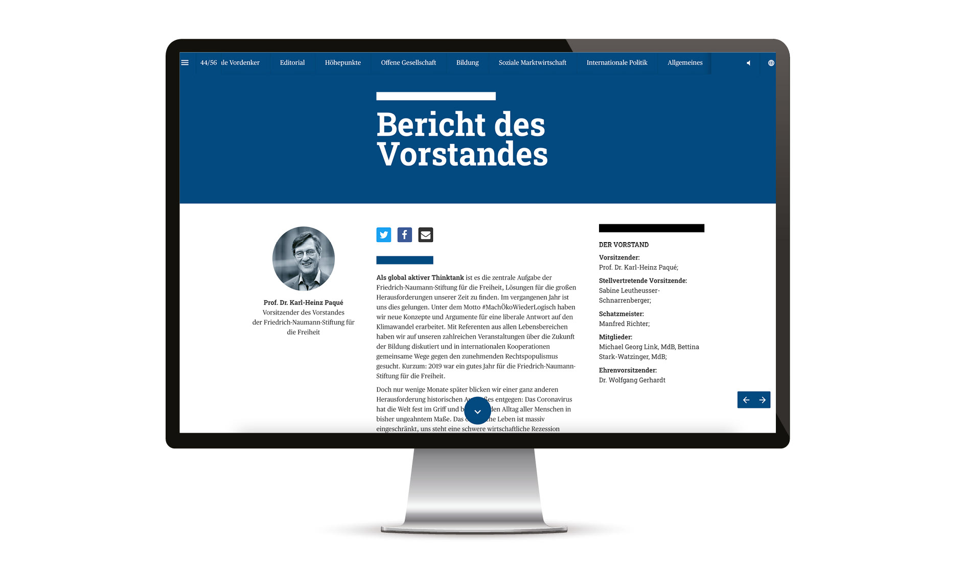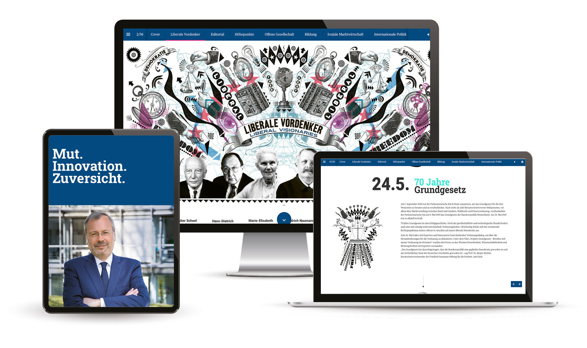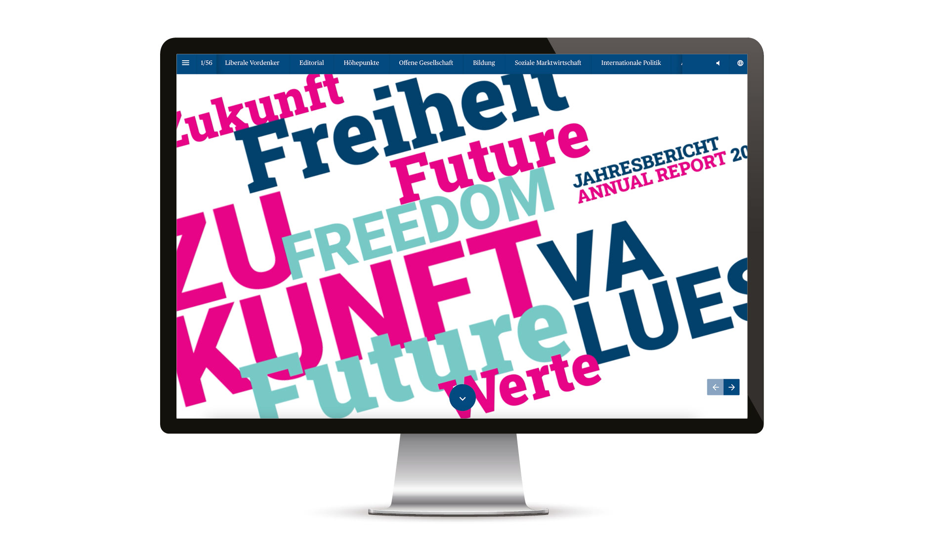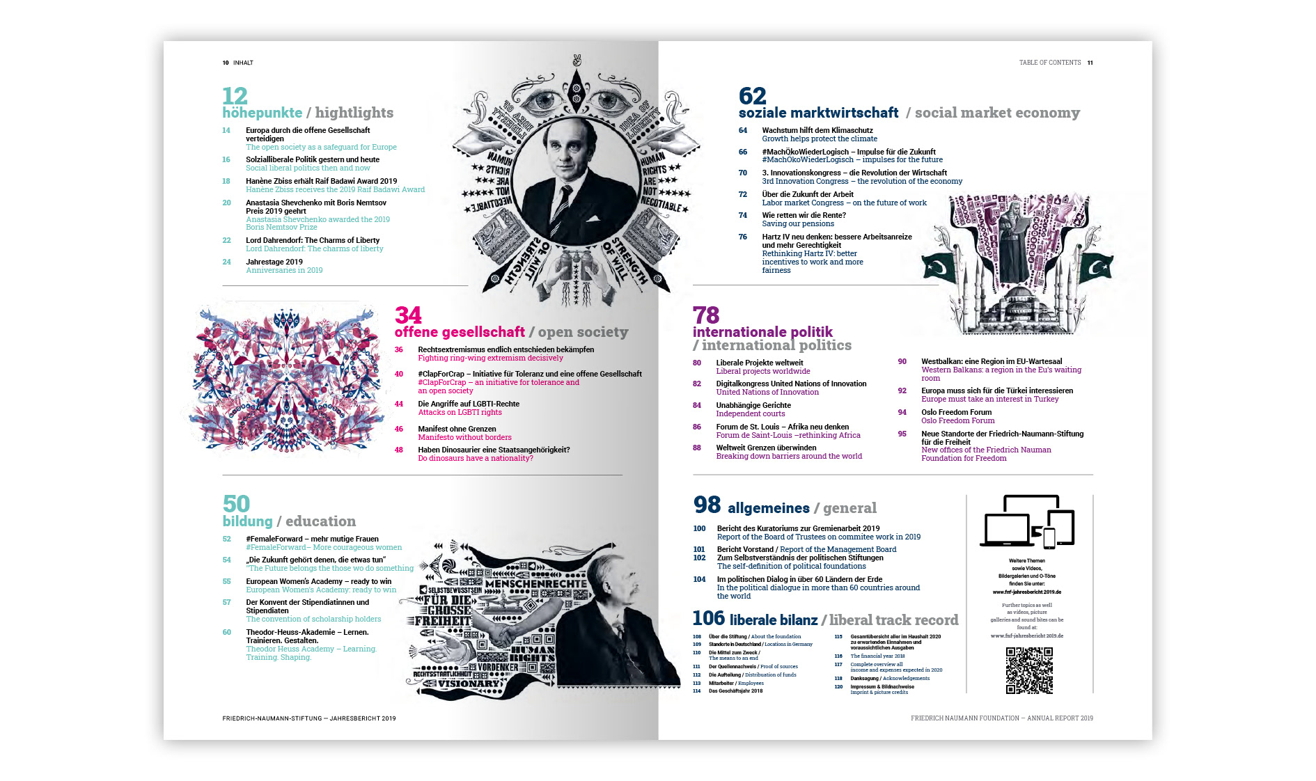 Art Direction for the Annual Report 2019 "Freedom, Future, Values" from the Friedrich-Naumann-Stiftung für die Freiheit. Production for Print and Online in Englisch and German. Agency: Einhorn Solutions.