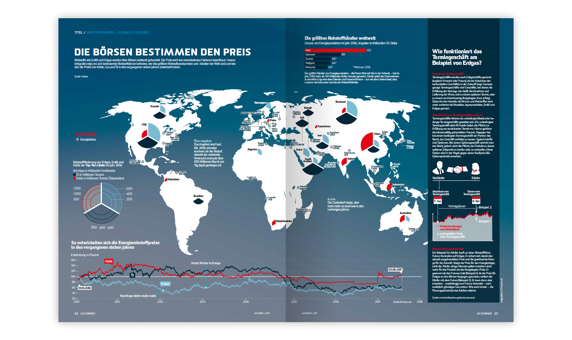 Art Direction for the Gaswinner employee magazine from Wingas. Agency: C3–Creative Code and Content.