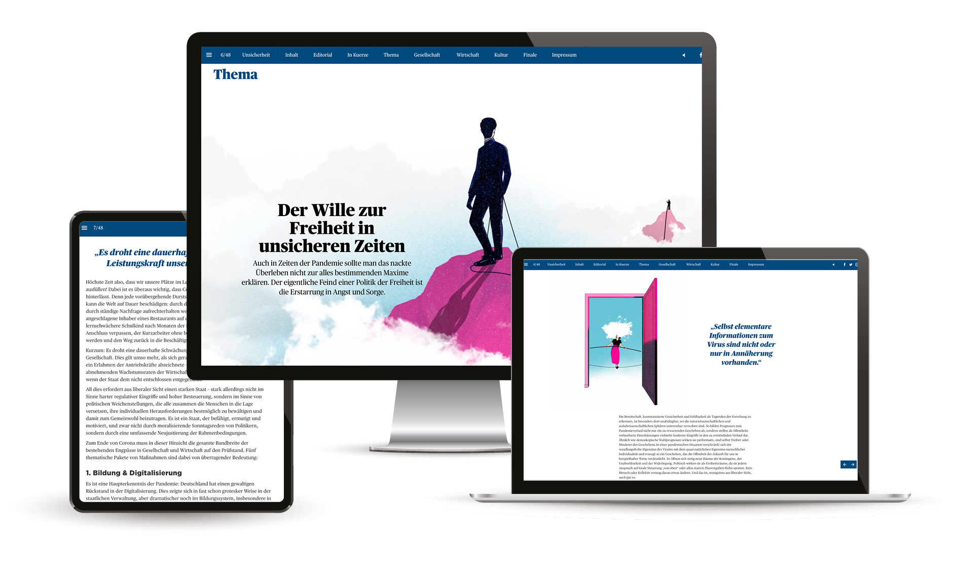 Art Direction and production for Liberal Magazine 01/2021 "Im Zeichen der Unsicherheit" from the Friedrich-Naumann-Stiftung für die Freiheit. Agency: Einhorn Solutions.