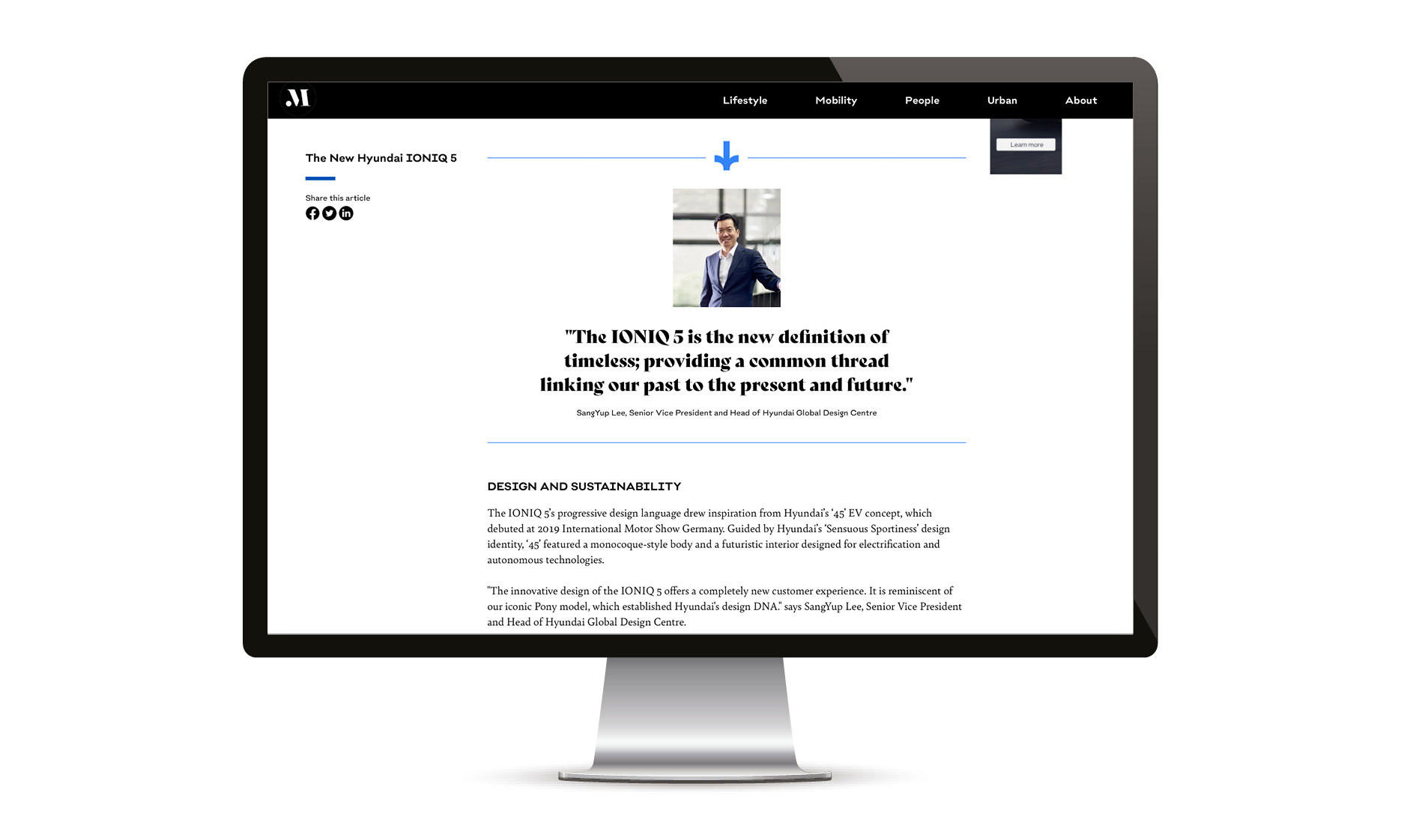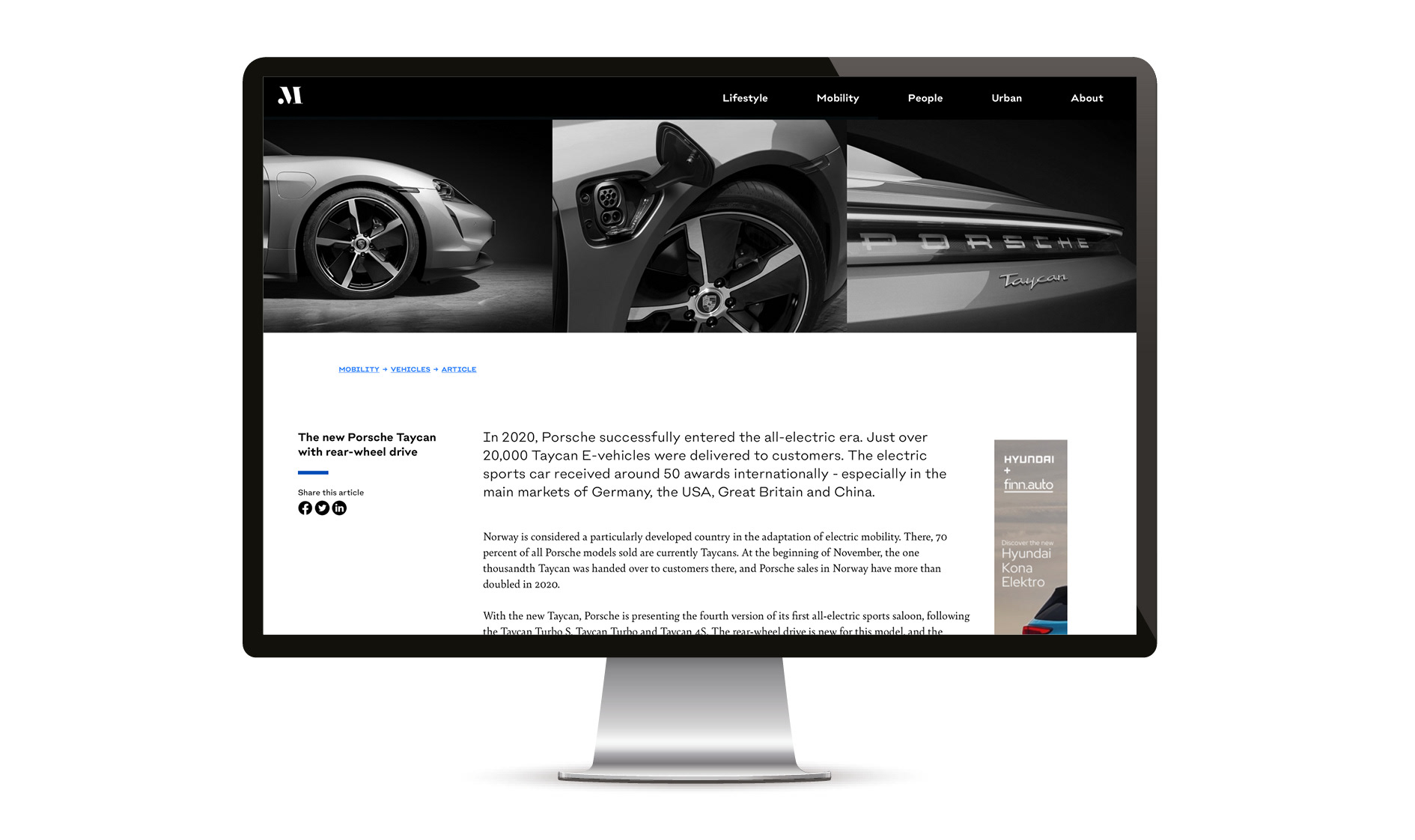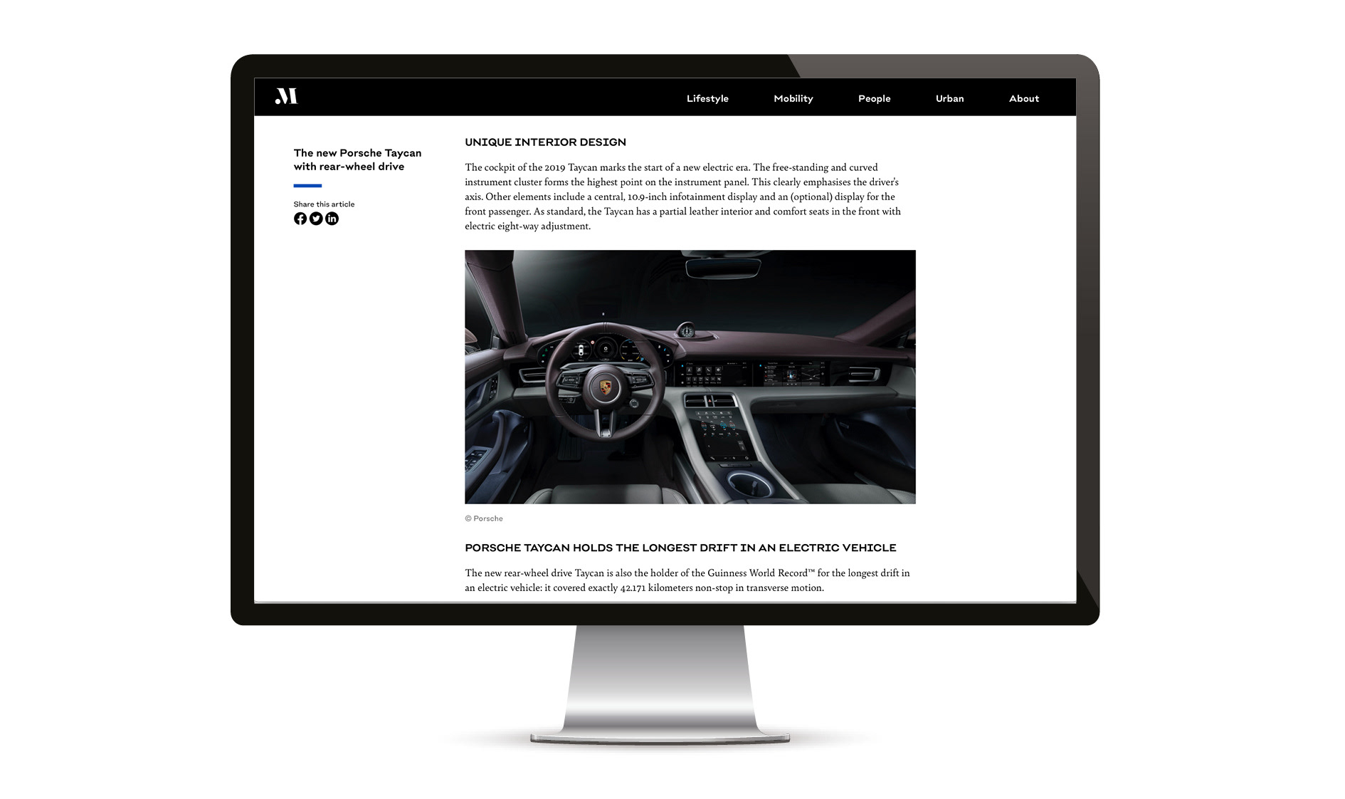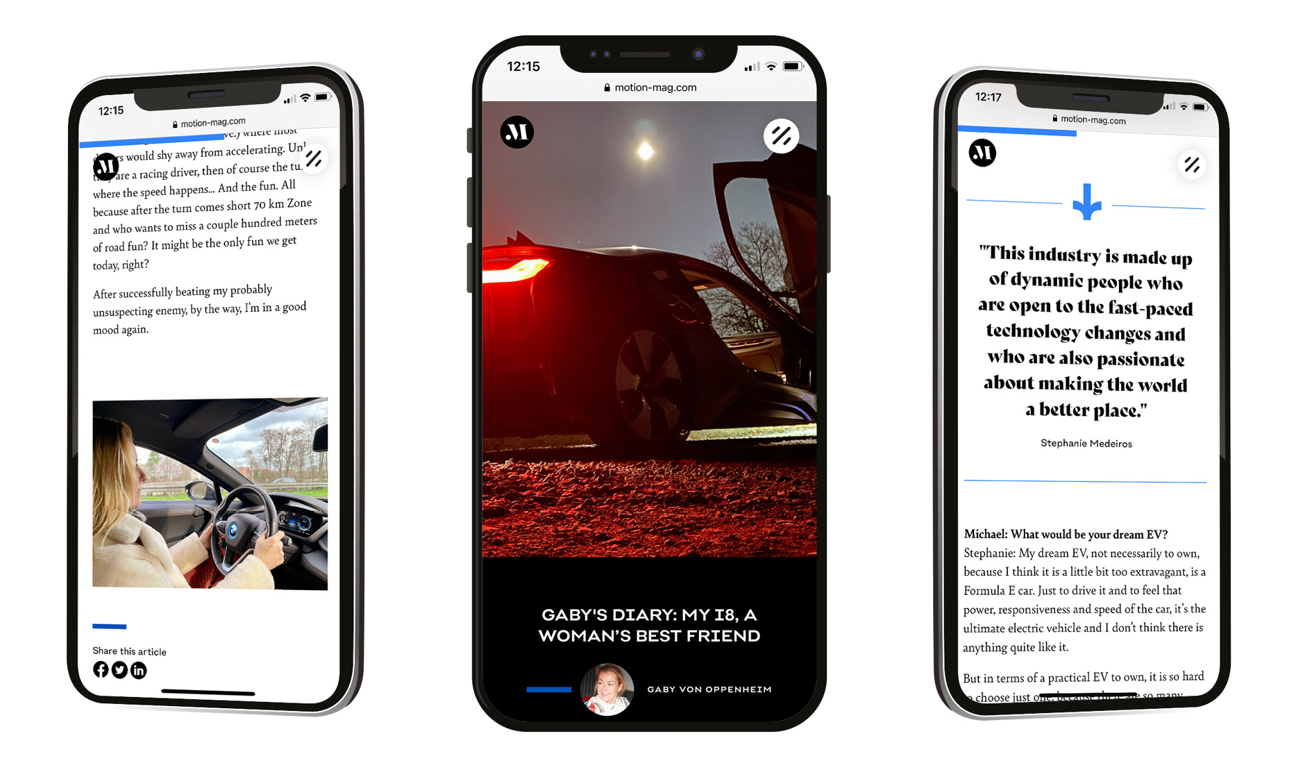 MOTION Magazine, the first international platform on smart mobility that captures the lifestyle, emotional and environmental side of the industry's electrification. MOTION's aim is to accompany you through your journey toward electrification from a lifestyle and cultural approach. In cooperation with Patrick Weseloh we developed a modular Corporate Design for the brand, the digital magazine and its editorial and visual content.
