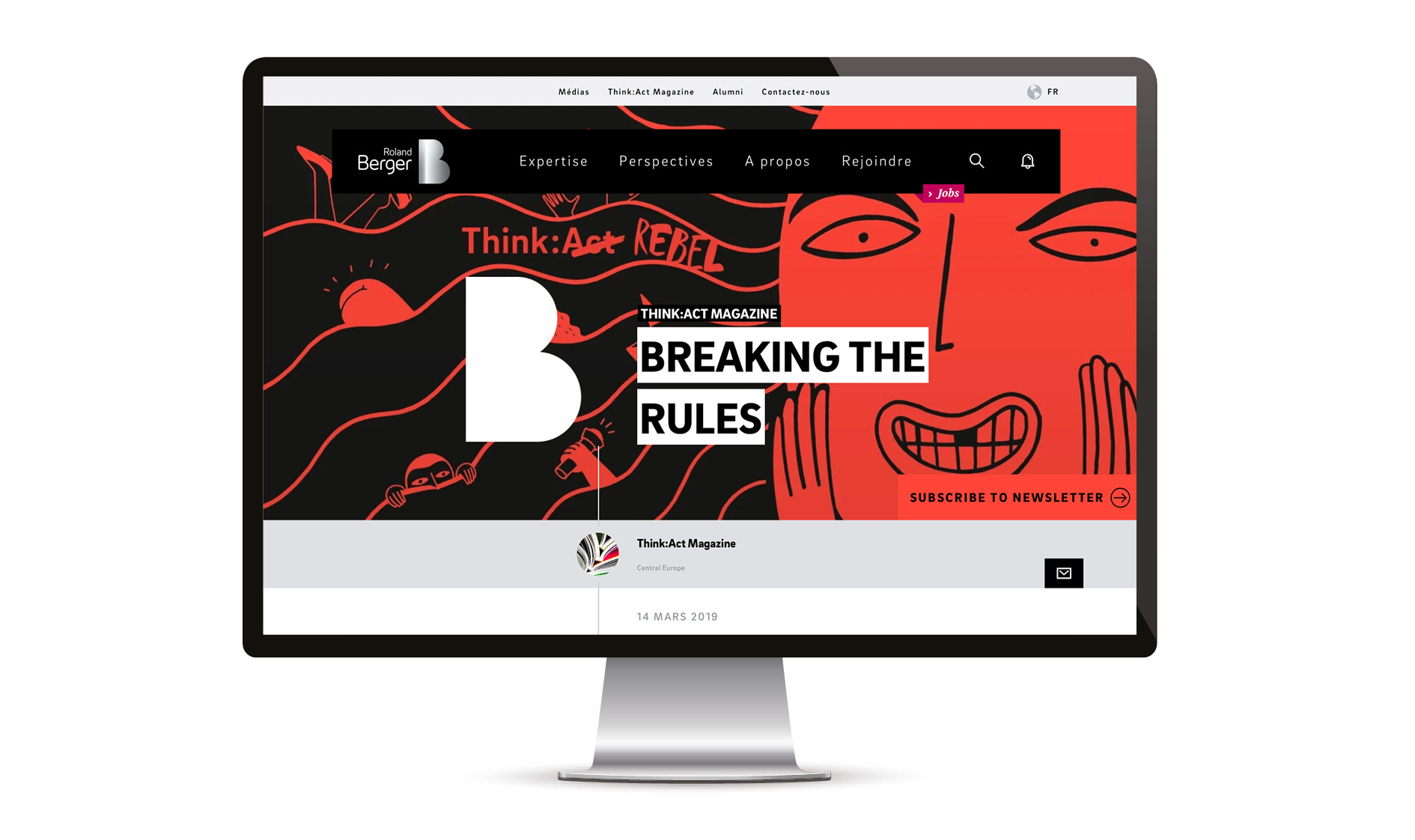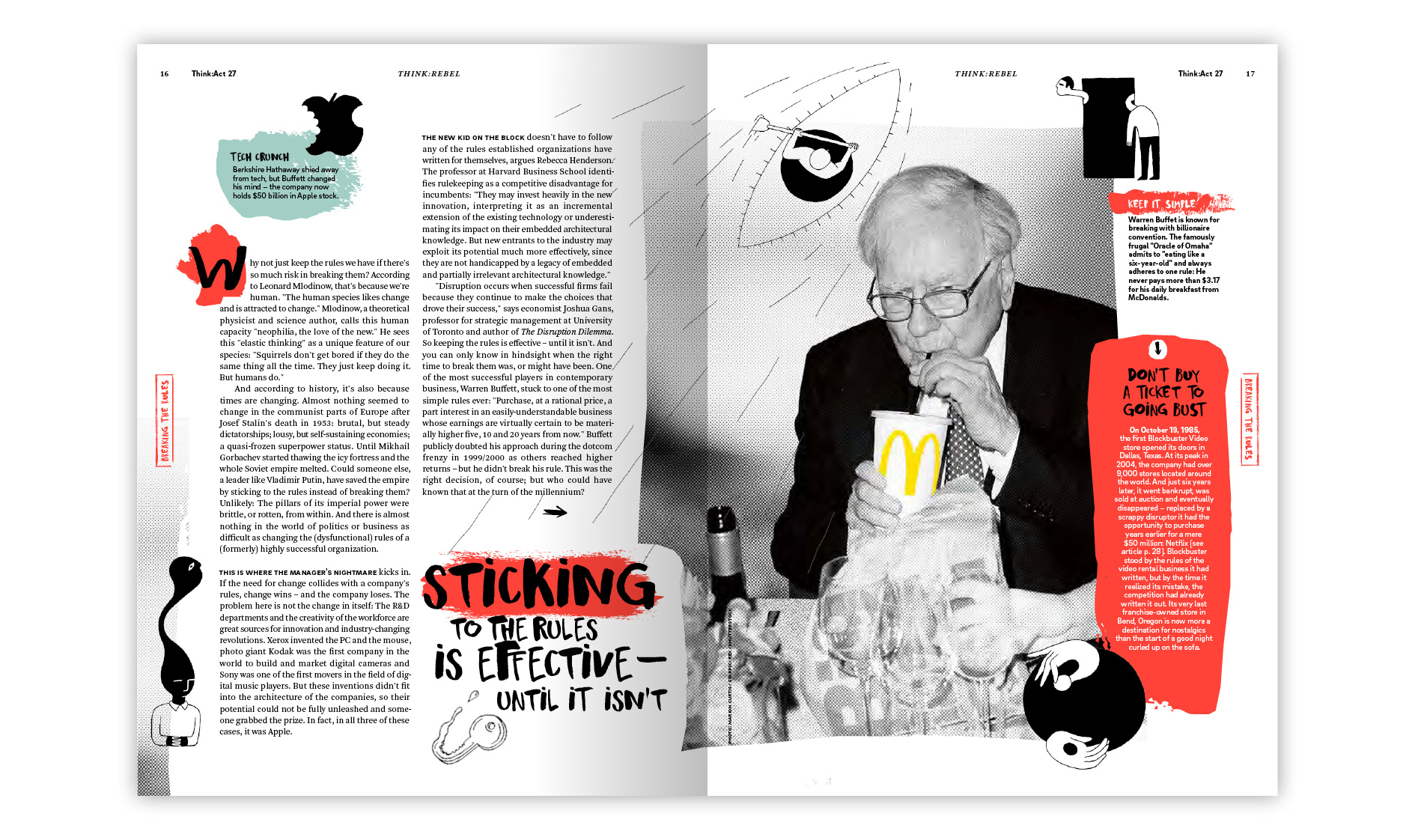 Art Direction for Think: Act Magazine 2019 "Breaking the Rules" by Roland Berger. Agency: Einhorn Solutions.