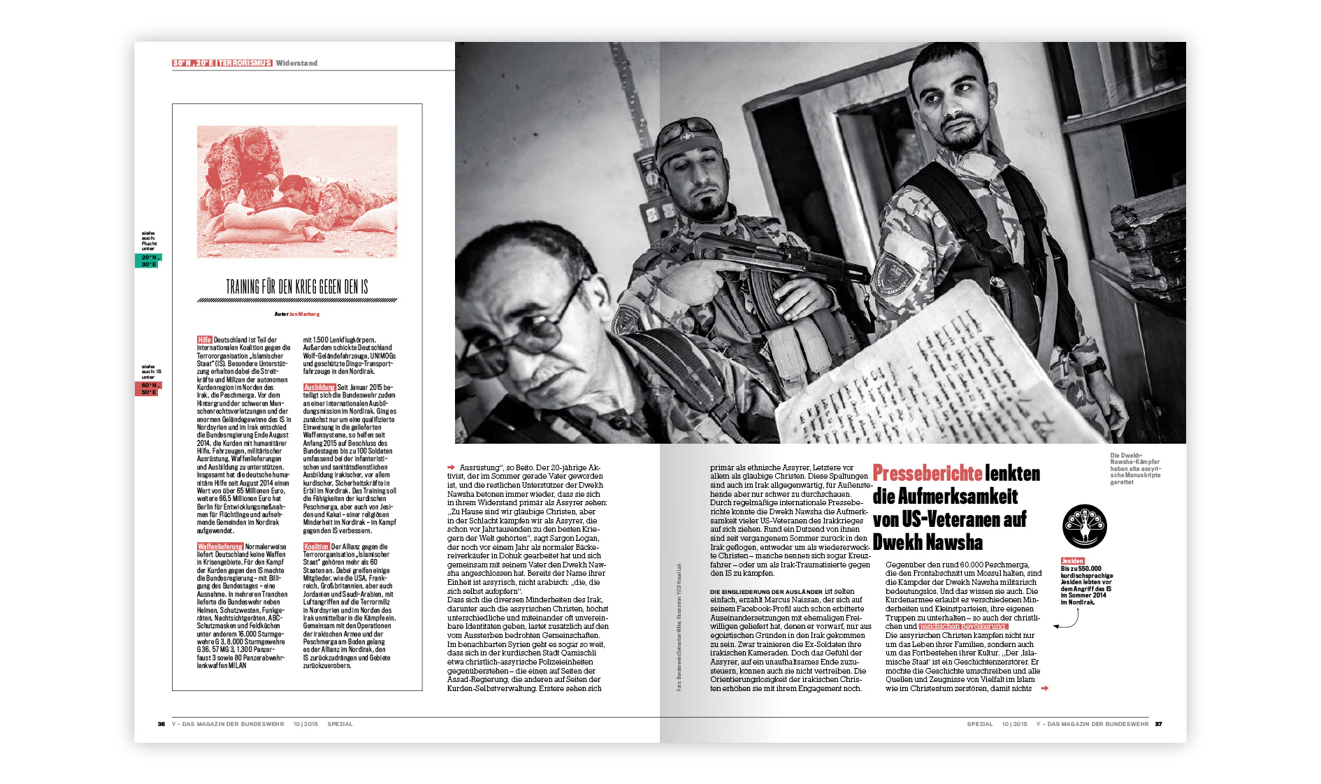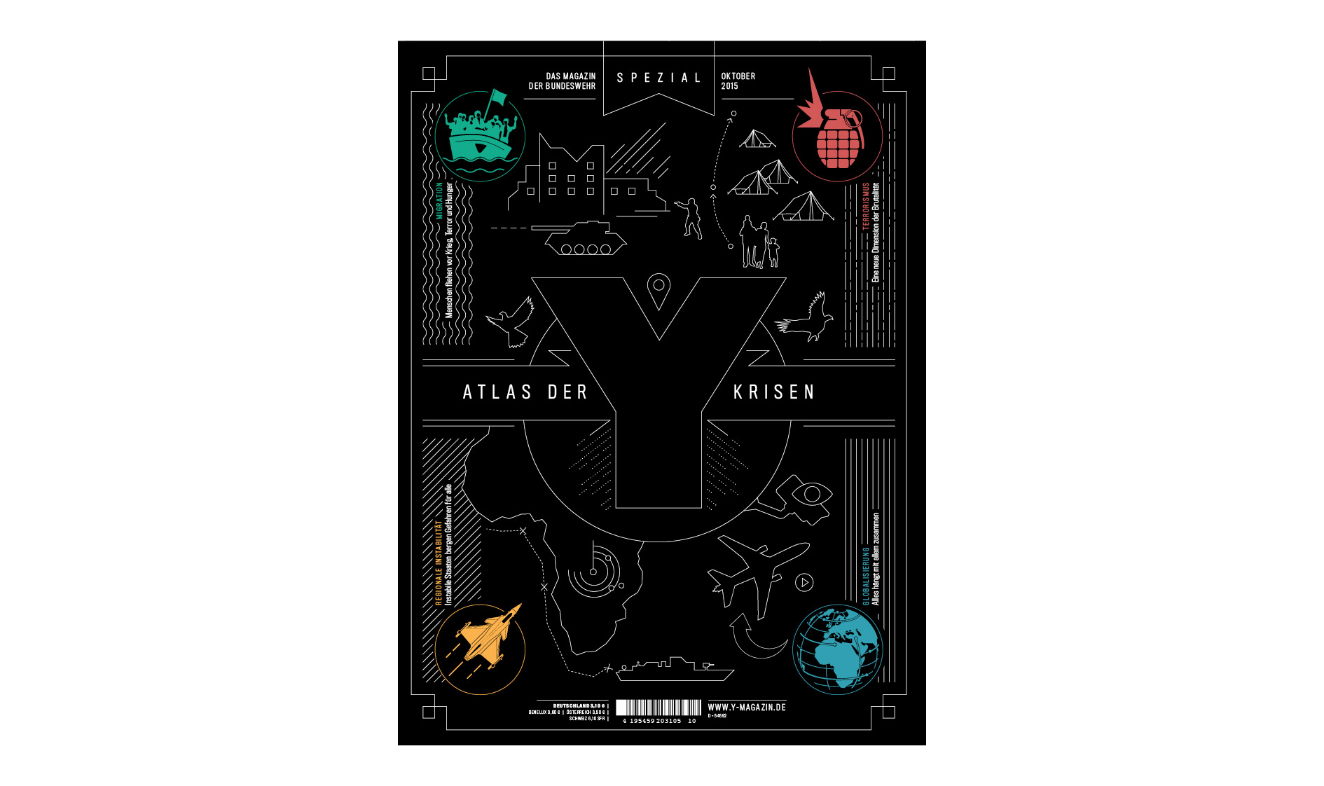 Art Direction for the Y-Magazine "Atlas der Krisen". This is the special edition 2015 of the Federal Ministry of Defense / Germany. Agency: C3–Creative Code and Content.