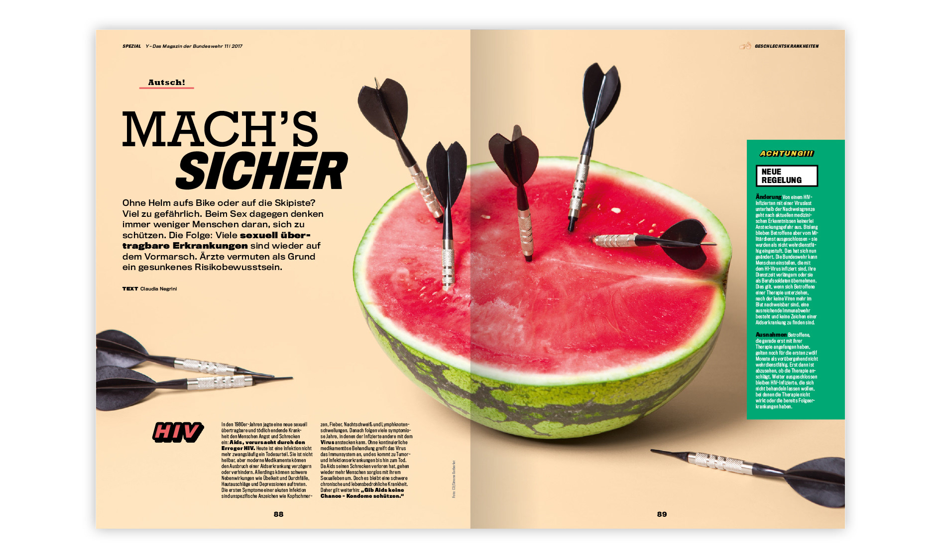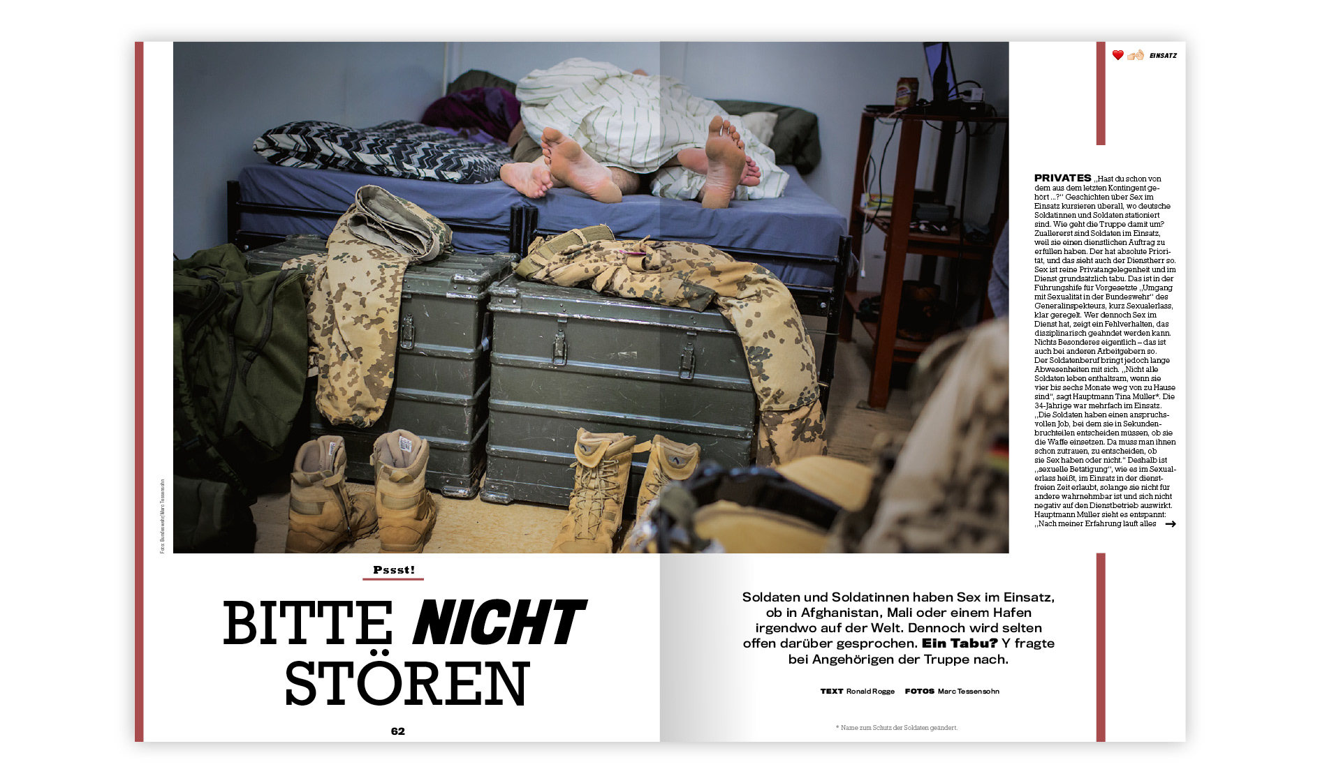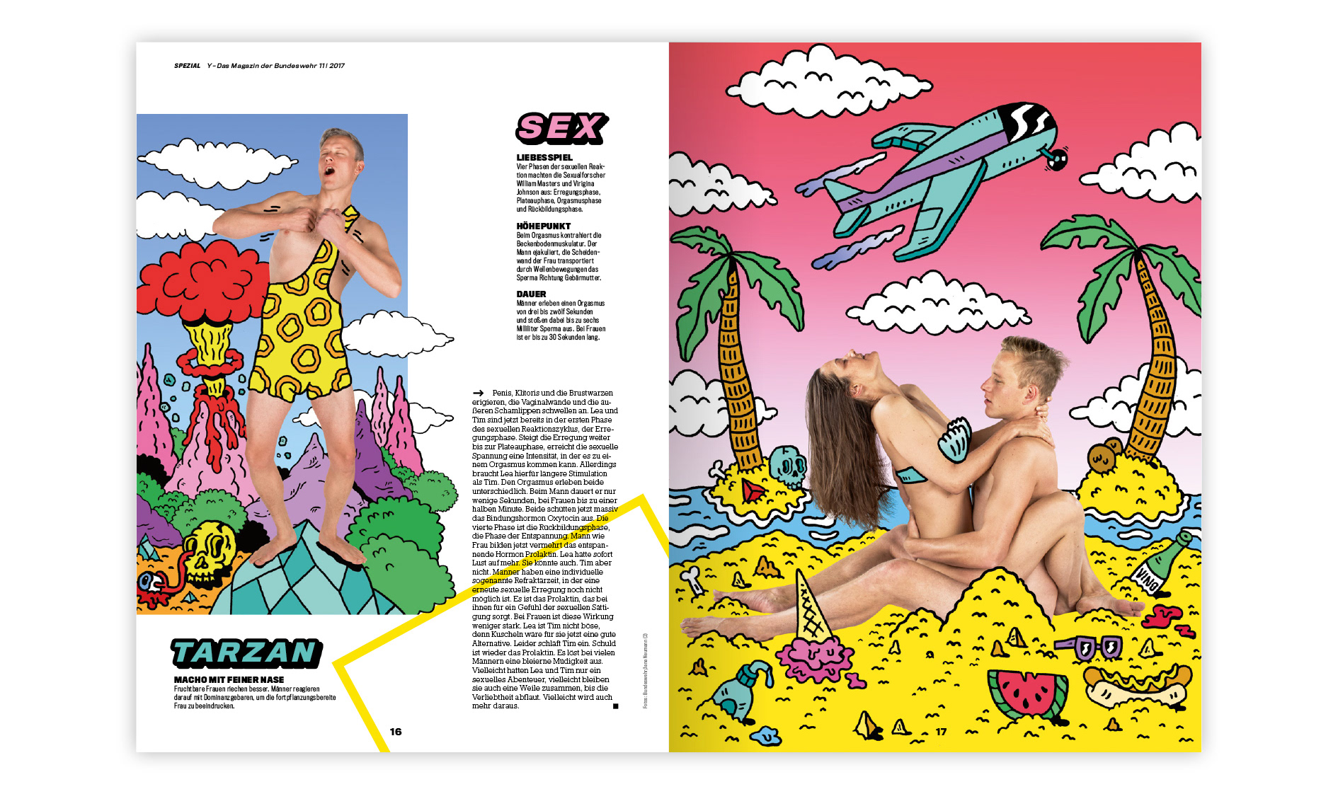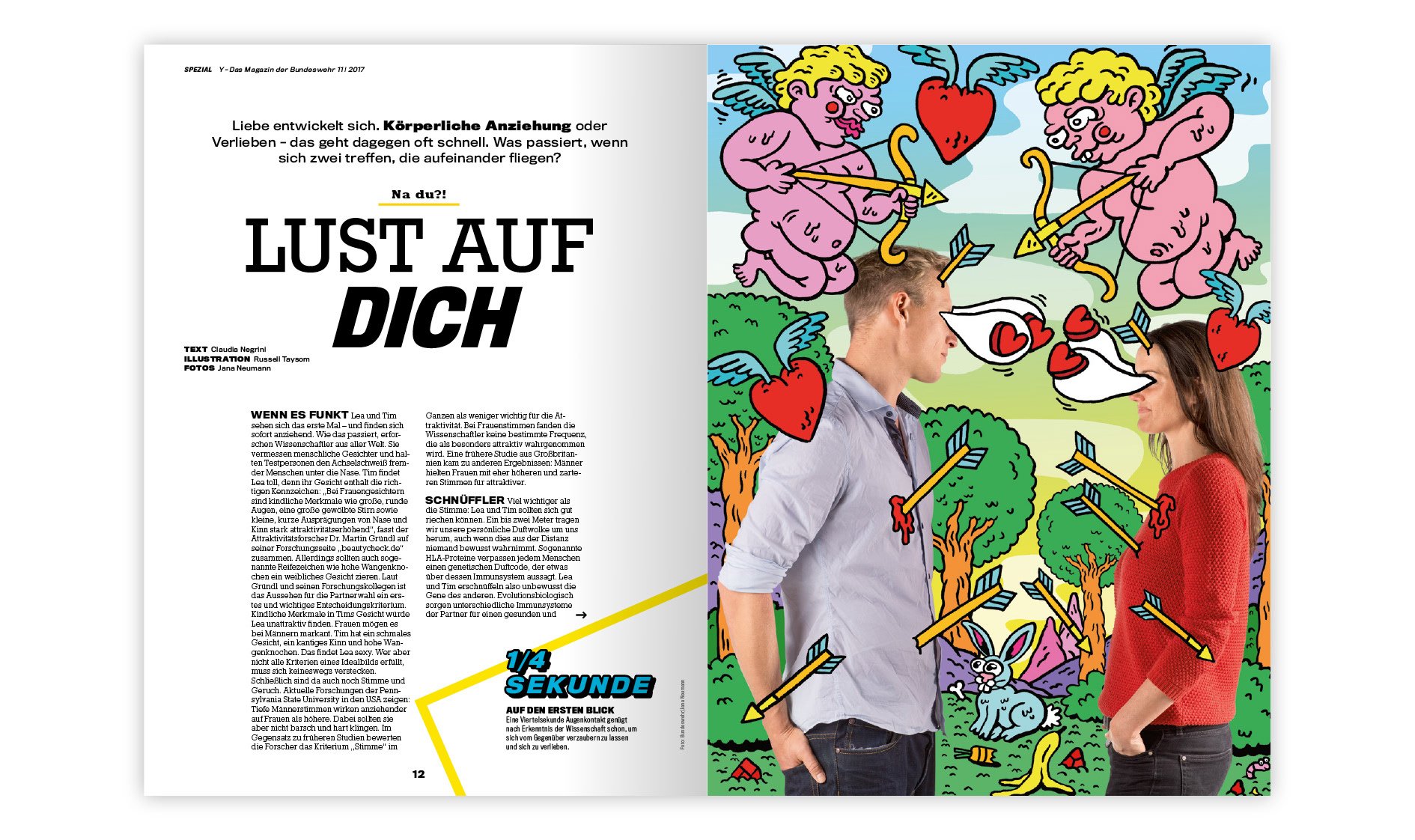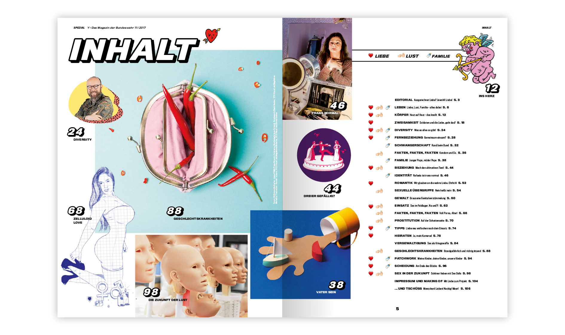Art Direction for the Y-Magazine "Liebe, Lust und Partnerschaft". This is the special edition 2017 of the Federal Ministry of Defense / Germany. Agency: C3–Creative Code and Content.